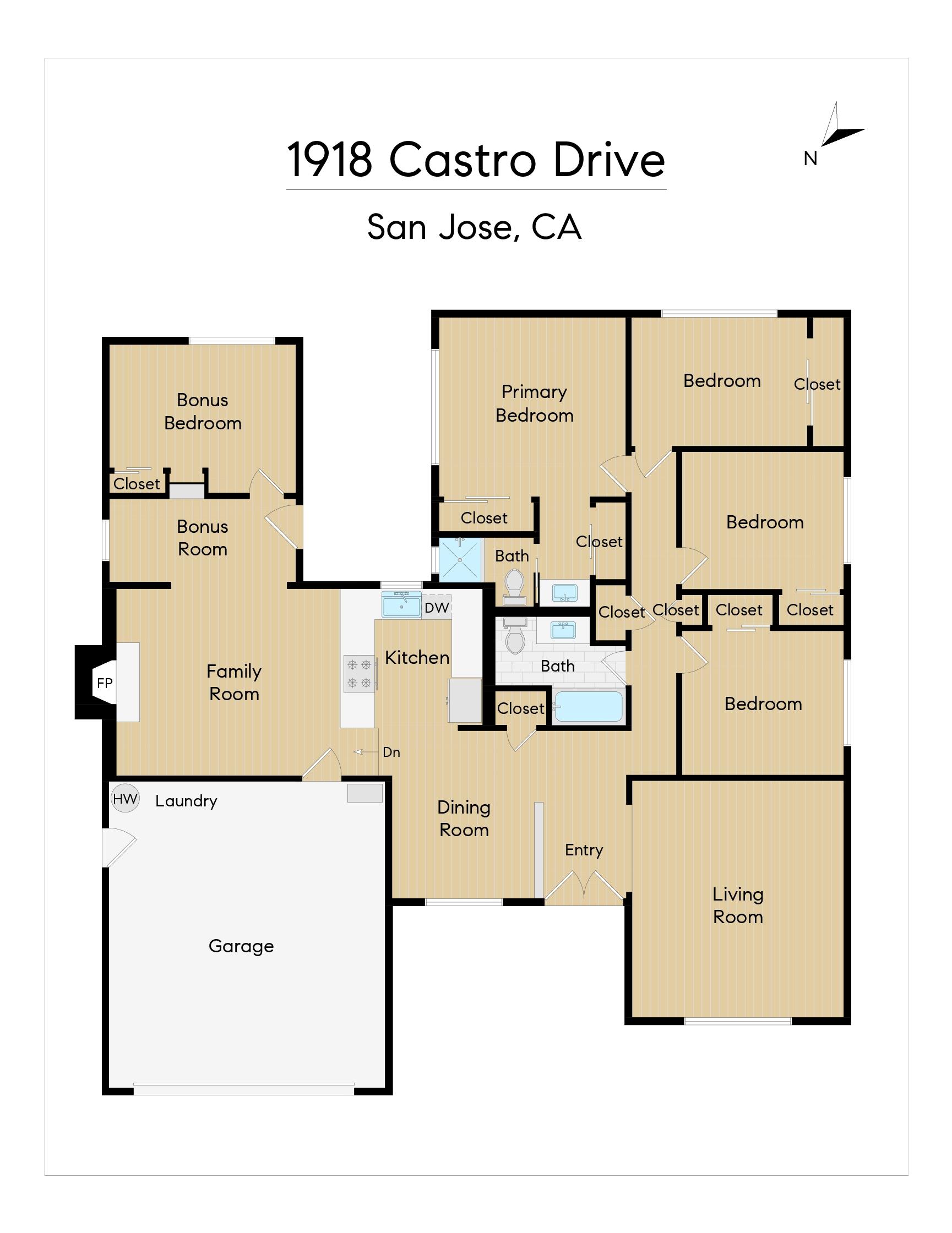 The single-level floor plan offers approximately 1,585 square feet with four bedrooms and two updated bathrooms. Plus, a bonus bedroom and a bonus room that combine for an additional 225 square feet. The total living space of this home offers approximately 1,810 square feet.